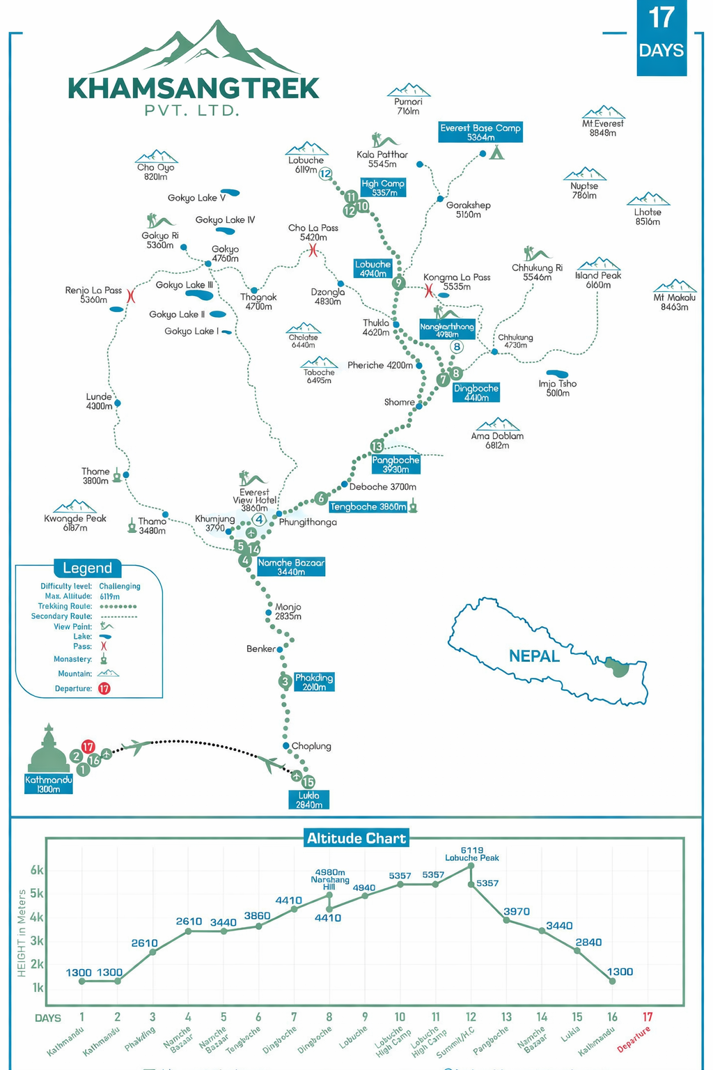 Breathtaking Himalayan Views: Enjoy scenic beauty with Lobuche Peak (6,119 m) standing tall in front of Mt. Everest. 17-Day Perfect Itinerary: A well-crafted program from...